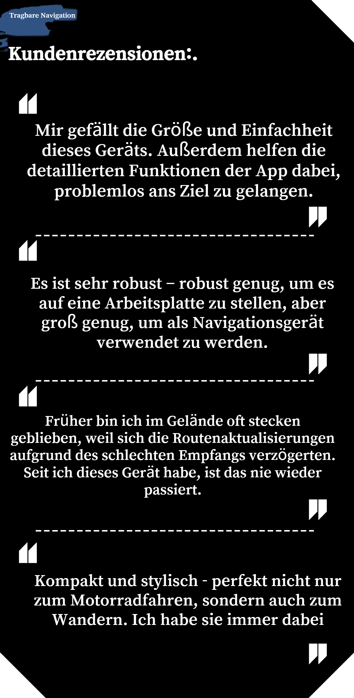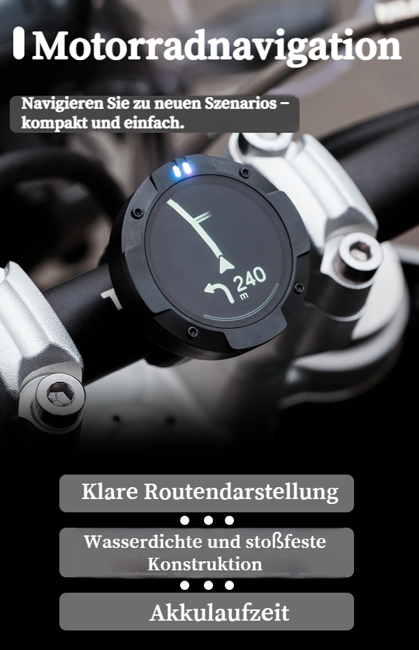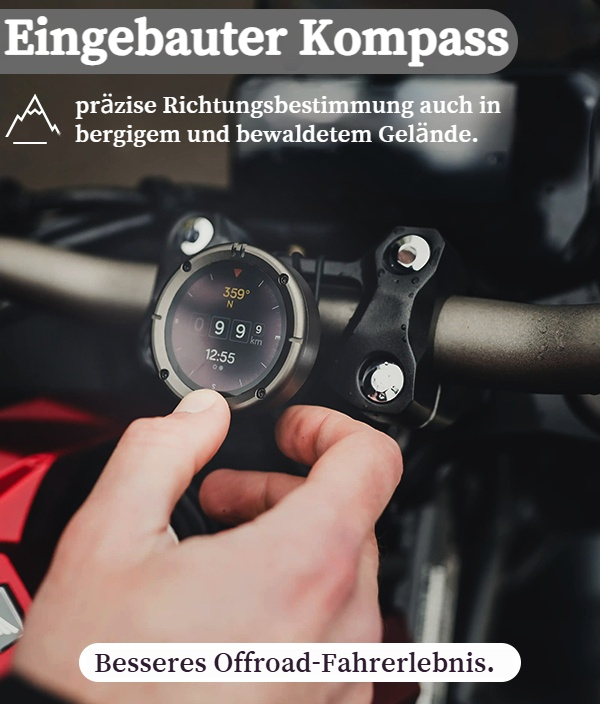 Dank integriertem Kompass behalten Sie auch in bergigem Gelände oder dichten Wäldern zuverlässig die Richtung – ideal für anspruchsvolle Touren abseits der Straße.