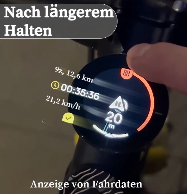 Behalten Sie Geschwindigkeit, Route, Fahrzeit und zurückgelegte Strecke jederzeit im Blick – für eine präzise und kontrollierte Fahrt.